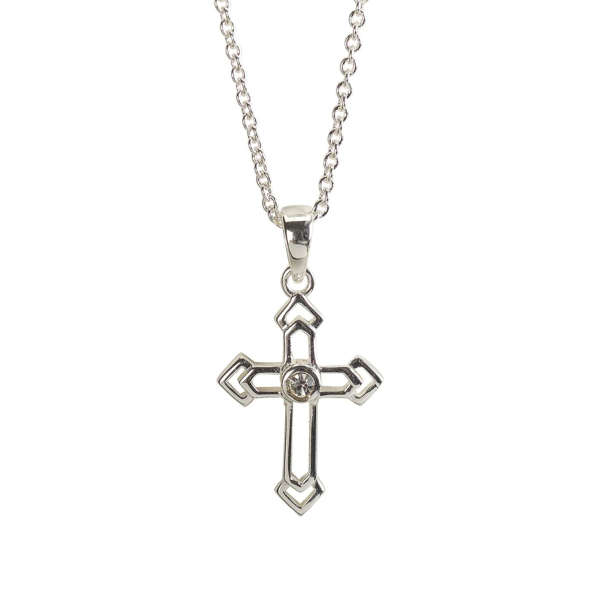 Silver Pl Open Bud Cross Necklace