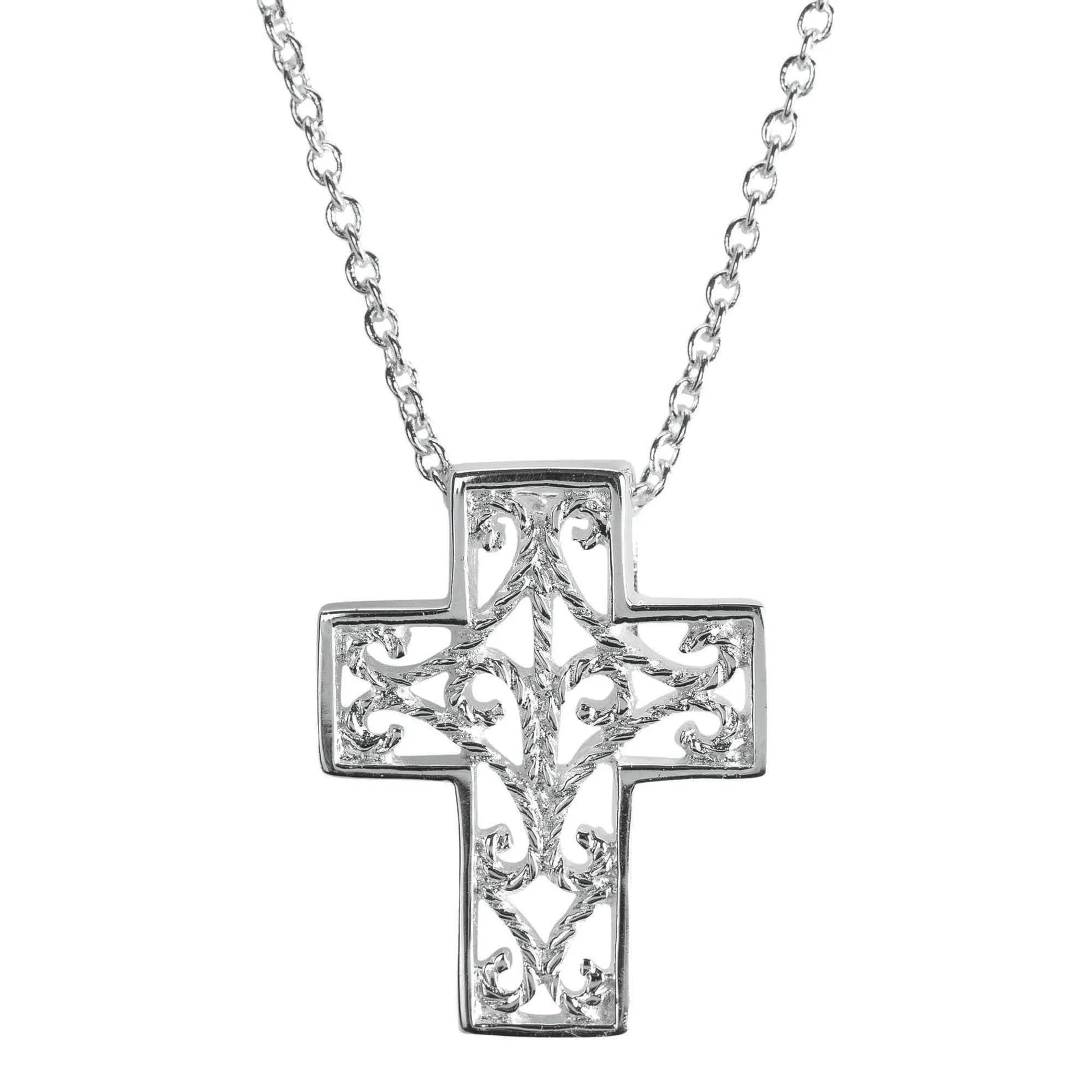 Elegant Wide Box Cross Features An Open Filigree Design.