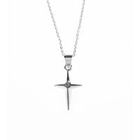 Silver Plated Star With Cz Cross On 16 Inch Silver Plated Chain