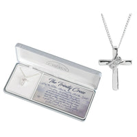 Deluxe Gift Box With Verse Lovely Cross Pendant Is Adorned With Center Sash That Has Three Sparkling Cubic Zirconia Clear Stones.