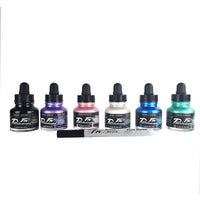 These Intensely Pigmented Acrylic-Based Inks Are Waterproof When Dry And Generally Lightfast. Each Set Includes Six 1 Oz. Bottles. The Pearlescent Set Includes Pearlescent Platinum Pink, Pearlescent Moon Violet, Pearlescent Galactic Blue, Pearlescent Waterfall Green, Pearlescent White, Pearlescent Black And One Fw Mixed Media Marker.