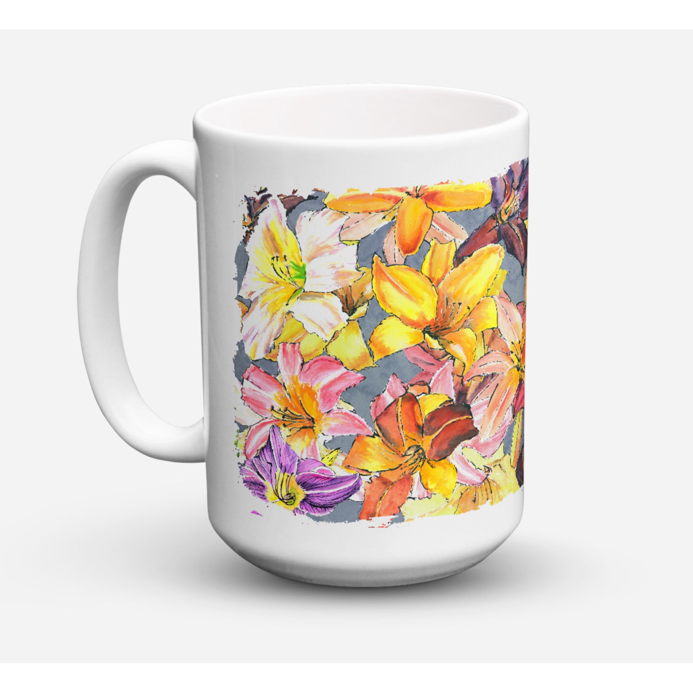 213-615872805310 Day Lillies Coffee Mug 15 Oz By Carolines Treasures, Inc, Made In Usa.Large 15 Ounce Coffee Mug. Holds A Nice Cup Of Coffee, Tea Or Even Takes The Place Of A Small Gumbo Bowl. Dishwasher Safe.