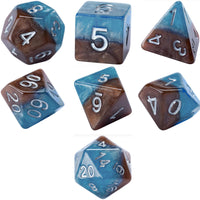 Gate Keeper Games And Dice: Halfsies Dice: Earth Elemental - 7Pc Set, Cerulean Blue & Brown, Pearlescent Swirl, 7 Resin Dice For Role Playing Games