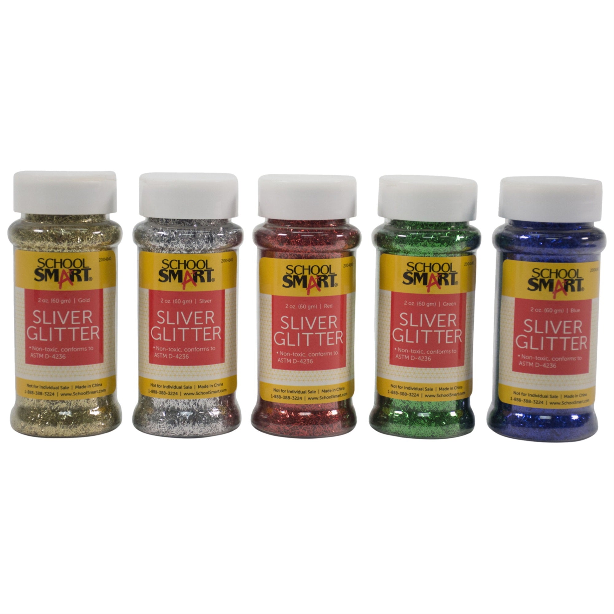 School Smart Craft Glitter Is Made With Tiny Shimmering Flakes Which Add Sparkle To Candles, Displays, Craft Projects, Costumes, Artwork Or Any Party. It Is Easy To Use By Just Spraying Or Brushing Adhesives On A Surface Then Sprinkle Colorful Glitter From The Handy Shaker Container To Make Attractive Craft Projects. Glitter Is Non-Toxic And Perfect To Use For Cards, Ornaments, Candles, Collages And Much More. Container Features A Click-It, Shaker Cap To Help Prevent A Craftastrophe (You Know They Type). When You Need To Add Stunning Shine To Your Art, You Can'T Go Wrong With Glitter From School Smart. Set Of Five 2 Ounce Jars. The Glitter Is Designed With Latex-Free Plastic And Does Not Contain Glass Or Metal.
