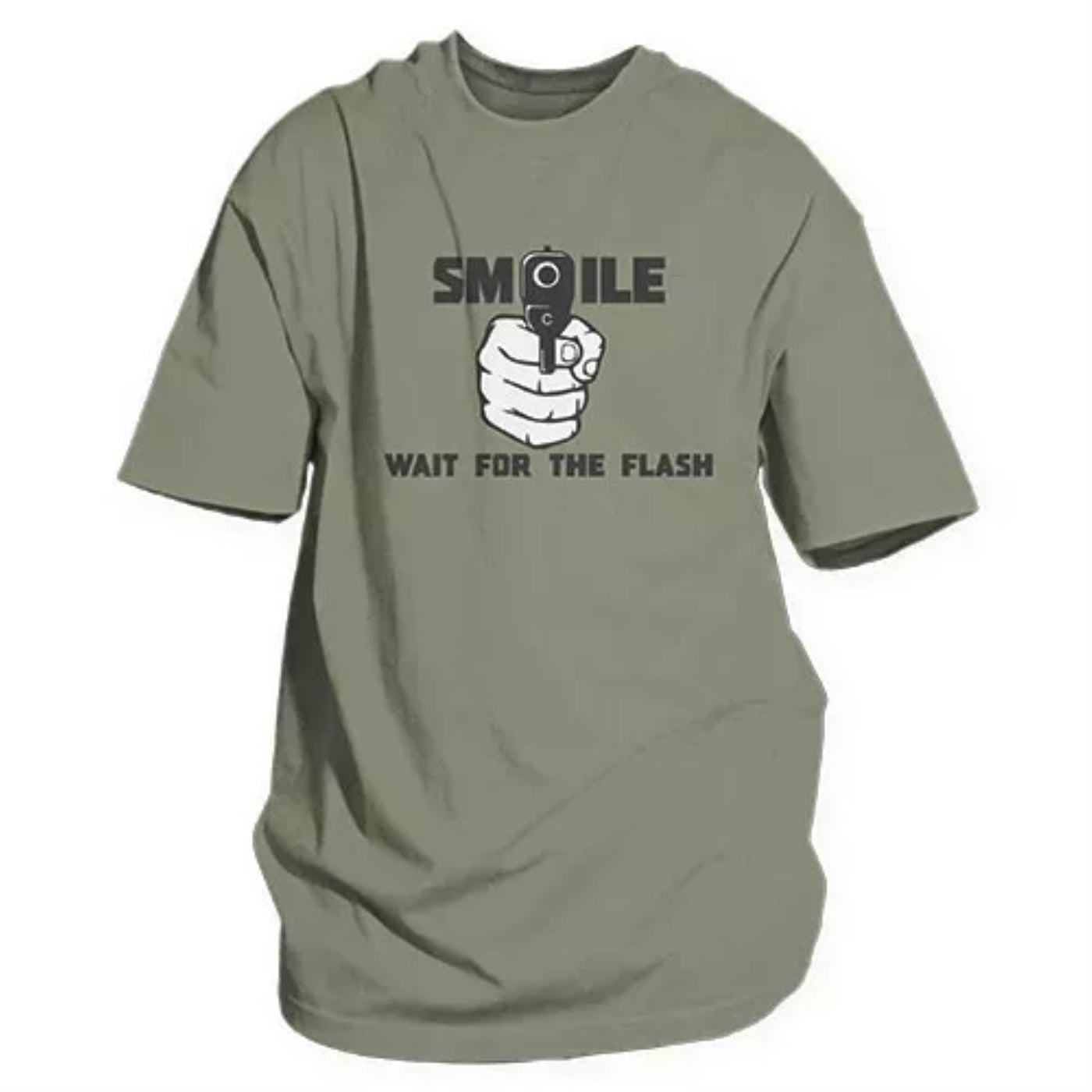 487-99598114701 Smile For The Flash Men'S T-Shirt Olive Drab - Medium Manufactured By Fox Outdoor Products. Smile For The Flash Men'S T-Shirt Olive Drab - Medium Fruit-Of-The-Loom Heavy Or Equivalent Screenprinted In The Usa