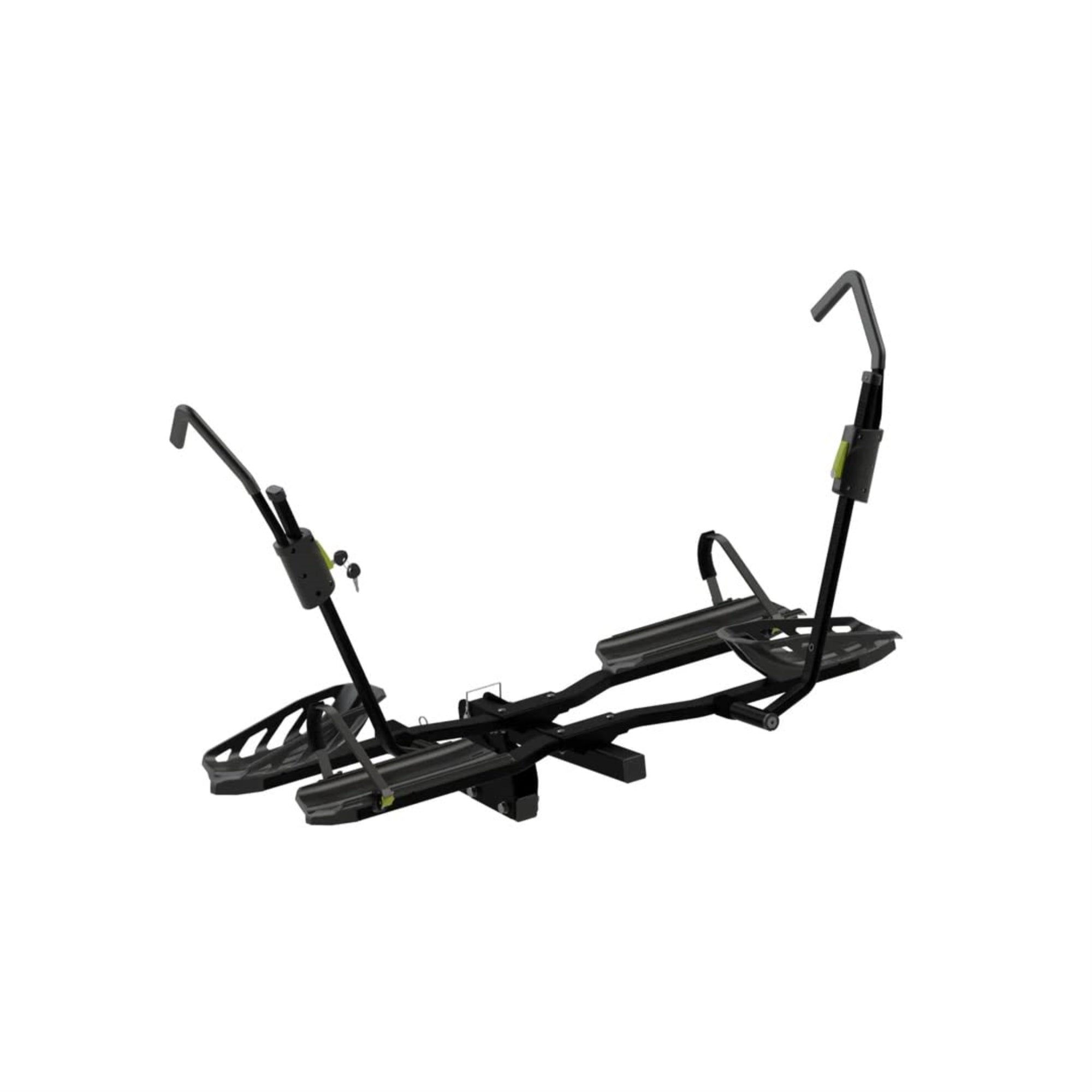 The Swagman Skaha 2 Plus Hitch Rack Is One Of Our Most Versatile Racks Ever, Safely Carrying Almost Any Bike. It Carries 2 Bikes, Up To 60 Lb Each, Making It Ebike Approved. It Installs In To 2 Hitch Receivers, And Can Fold Up Against The Rear Of Vehicle When Not In Use. Locking Zero Frame Contact Ratchet Arms Secure The Front Wheel Of The Bike By The Tire, Making It Safe For Carbon Fiber Frames. The Tire Trays Work With Tires Up To 5 Wide, Making The Skaha Compatible With Fat Bikes Out Of The Box. Finally, The Skaha 2 Plus Can Be Expanded To Carry Up To 4 Bikes* When Using The Optional Skaha 2 Plus 2 Add-On (Sold Separately). Finally, With The Optional Ramp & Bridge (Sold Separately), You Can Make Loading Heavy, Larger Bikes A Breeze By Simply Rolling Them Up Into Place On The Rack.