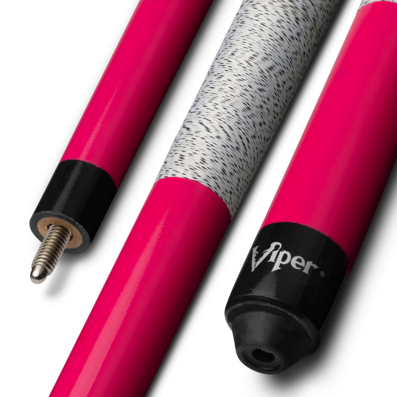 Enhance Your Game And Show Off Audacious Style With The Hot Pink Billiard Cue Sticks From Viper. Fashioned From Maple Hardwood To Withstand Years Of Use, The Hot Pink Billiard Cues Stand Out From The Rest With A Flashy And Polished Design. These Cue Sticks Feature All The Performance-Enhancing Qualities Youve Come To Expect From Exceptional Cues. A Le Pro Leather Tip Ensures A Solid Grip On The Ball, Reducing Miscues, A Pro Taper Gives A Consistent And Comfortable Feel Across Your Stroke, And A Faux Leather Wrap Reduces Vibration And Provides A Great Look For The Budget Conscious. The Shaft And Butt Combine With Resilient Implex Joints Provide Internal Strength And Consistent Feedback.