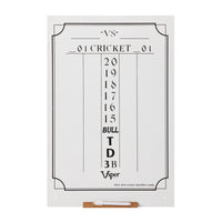 Complete Your Sisal Dartboard Experience With A Dry Erase Scoreboard From Viper! This Convenient Dry Erase Scoreboard Wipes Clean Easily After Games And Can Be Used Just As Well For Cricket And 01 Games, Including Popular Variations On Standard Cricket, With Bonus Spaces For Triple, Double And 3 Bed Shots. The Viper Dry Erase Scoreboard Is Available In Two Sizes, So You Can Choose The Best Fit For Your Dart Room, Or Dartboard Cabinet. Included With Your Scoreboard Is A Dry Erase Marker With A Magnetic Eraser Cap; Youll Have A Hard Time Losing This Marker! However If You Do, Additional Markers Are Available From Viper.