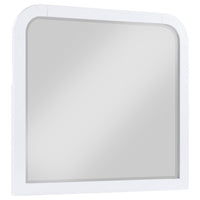 Complete Your Bedroom With A Modern Framed Dresser Mirror. Ideal For A Contemporary Space, It Features A Crisp Silhouette With Square Lower Corners And Rounded Upper Corners. Its Pearl White Finish Is Light And Airy, Ideal For A Compact Space. The Mirror Glass Beveled To Create Dimensionality In Your Bedroom And Is Ideal For Getting Yourself Ready To Go In The Morning. This Mirror Is A Great Way To Finish Your Bedroom Ensemble.