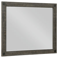 Top Off A Stylish Lilith Collection Bedroom Set With The Bright Reflectivity Of A Framed Mirror. Perfect For The Dresser Top, It Sports A Matching Distressed Gray Finish Over Roughhewn Wood Details In Pine Wood And Veneer. Each Corner Of The Frame Is Complete With A Single Hexagonal Bolt Head, Offering That Perfect Touch Of Rugged, Industrial-Inspired Energy. The Mirror Glass Is Beveled To Create A Touch Of Depth Within Your Bedroom. Use The Mirror For Morning Rituals, Or For Quick 'Fit Check On Your Way Out The Door.