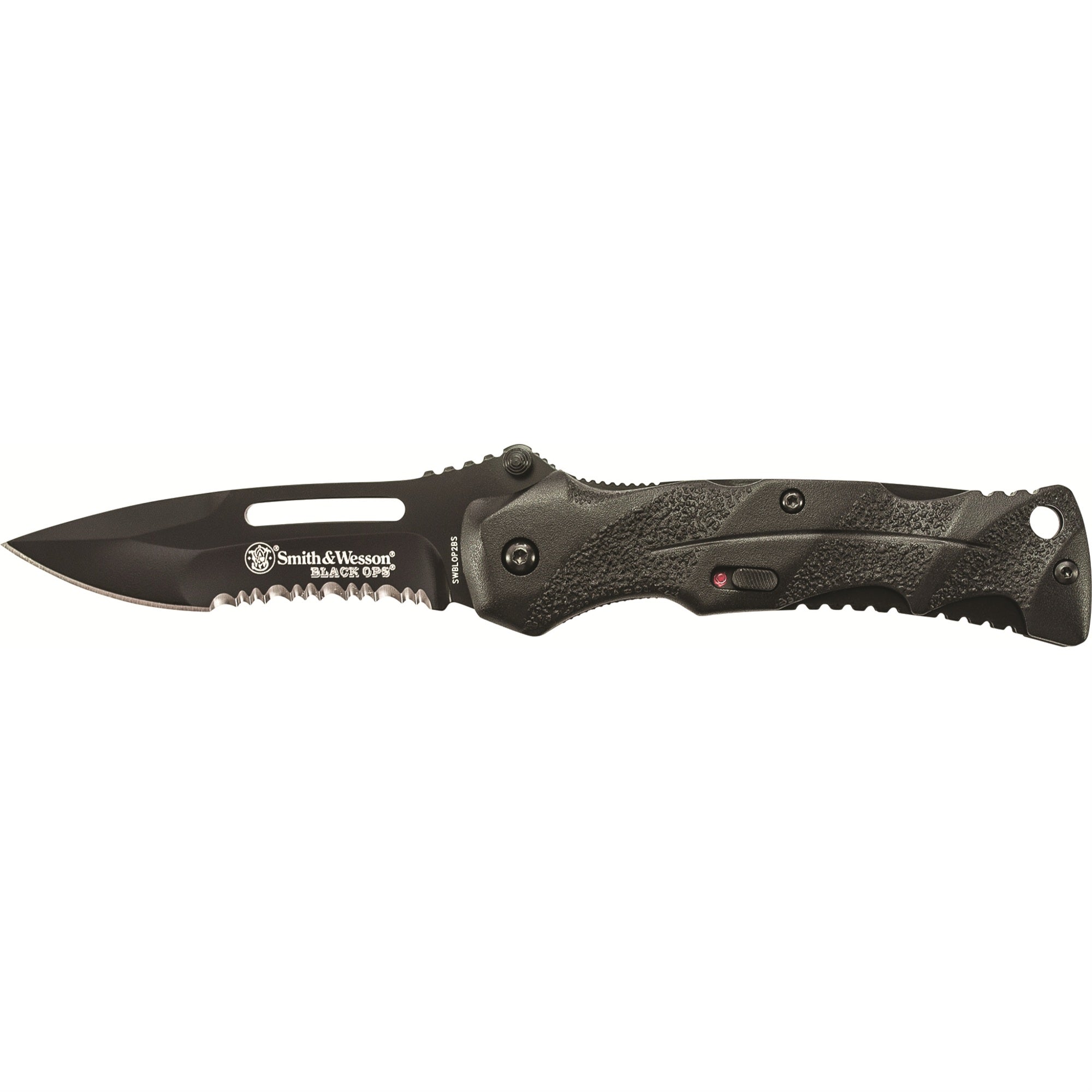 Swblop2Bs - Smith &Amp; Wesson Black Ops 2 Assist Black Coated W/40% Serrated Stainless Steel Blade W/Black Handle