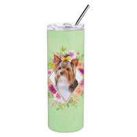 Caroline'S Treasures Yorkshire Terrier #1 Green Flowers Double Walled Stainless Steel 20 Oz Skinny Travel-Insulated-Tumblers,