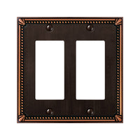 Amerelle Imperial Beaded Aged Bronze Bronze 2 Gang Die-Cast Metal Rocker Wall Plate 1 Pk