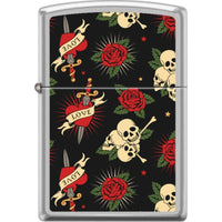 2018 Zippo Procut Satin Chrome Roses Hearts Skulls