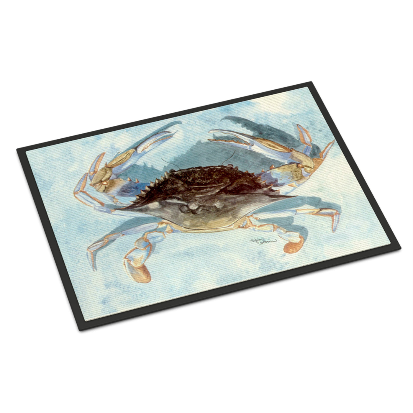 213-615872785223 Blue Crab Indoor Or Outdoor Mat 24X36 By Carolines Treasures, Inc, Made In Usa.Welcome Your Family And Friends With This Artwork Mat In Full Color. This Action Backed Mat With Hold Up In Almost Any Weather Condition. This Door Mat Measures About 24 Inches By 36 Inches And Has A Black Binding Tape To Hold It'S Many Layers Together. The Top Layer Is A Polyester Felt That Is Dyed With The Image That You See On The Mat. The Next Couple Of Layers Give The Mat Stability And The Bottom Of The Mat Is Rubber That Has Been Stamped To Help Prevent Slipping. To Clean This Mat, Hose It Off With A Water Hose Or Use A Power Washer. Do Not Use Any Cleaner That Produces Suds.