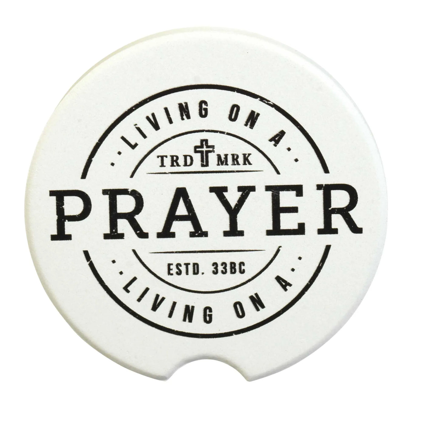 These Car Coasters Add An Inspirational And D?Corative Touch To Your Auto Cupholders. Features A Whimsical Design Of: Living On A Prayer. The Coasters Are Practical, Too: The Sandstone Ceramic Absorbs Moisture, And Include A Finger Notch For Easy Removal From Cupholder. Diameter Is 2 5/8In; Thickness Is About .25In. Sold As A Set Of Two In Carded Header Bag.