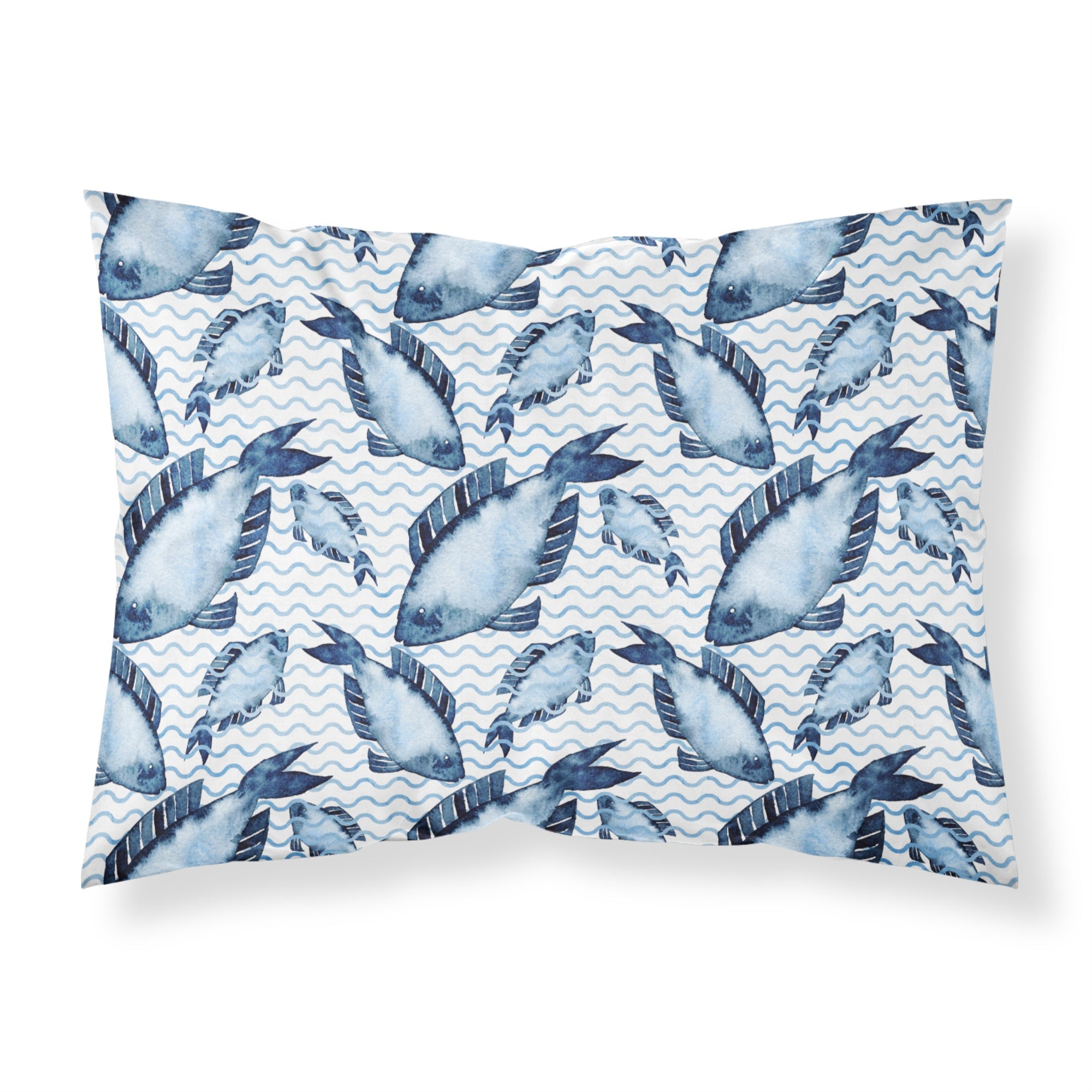 Caroline'S Treasures Beach Watercolor Fishes Printed, Polyester, 250 Thread Count, Envelope Closure Pillowcase, Standard, Mult