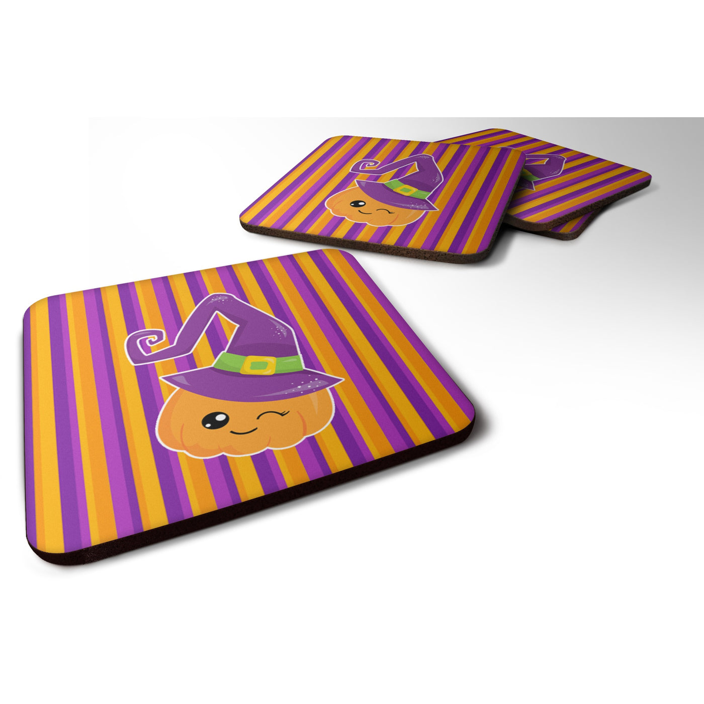 Caroline'S Treasures Halloween Pumpkin Witch Foam Coaster Set Of 4, 3.5, Multicolor