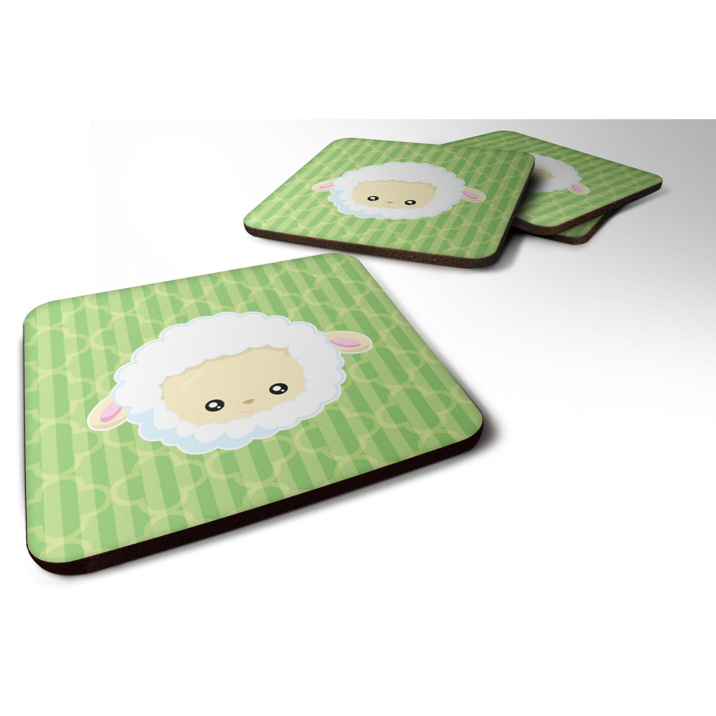 Caroline'S Treasures Sheep Lamb Face Foam Coaster Set Of 4, 3.5, Multicolor