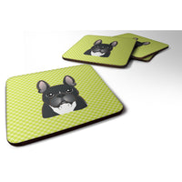 Checkerboard Lime Green French Bulldog Foam Coaster Set Of 4