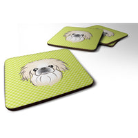 Checkerboard Lime Green Pekingese Foam Coaster Set Of 4