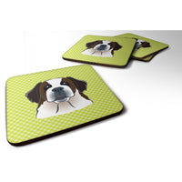 213-615872895878 Checkerboard Lime Green Saint Bernard Foam Coaster Set Of 4 By Carolines Treasures, Inc, Made In Usa.Square Artwork Foam Coaster Set Of Four Coasters. Each Measuring 3 1/2 Inches By 3 1/2 Inches. Permanently Dyed With Full Color Artwork And Fade Resistant. Great To Keep Water From Your Beverage Off Your Table And Add A Bit Of Flair To A Gathering. Match With One Of The Insulated Coolers Or Huggers For A Nice Gift Pack. Wash The Coaster In The Top Of Your Dishwasher, Take Out And Lay Flat To Dry. Design Will Not Come Off. Made From The Same Material That We Use For Our Mouse Pads. Material Is Heat Resistant. Perfect For Cold Or Hot Drinks. Coffee Or Tea.