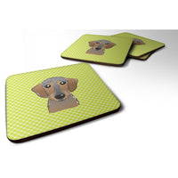 213-615872895748 Checkerboard Lime Green Wirehaired Dachshund Foam Coaster Set Of 4 By Carolines Treasures, Inc, Made In Usa.Square Artwork Foam Coaster Set Of Four Coasters. Each Measuring 3 1/2 Inches By 3 1/2 Inches. Permanently Dyed With Full Color Artwork And Fade Resistant. Great To Keep Water From Your Beverage Off Your Table And Add A Bit Of Flair To A Gathering. Match With One Of The Insulated Coolers Or Huggers For A Nice Gift Pack. Wash The Coaster In The Top Of Your Dishwasher, Take Out And Lay Flat To Dry. Design Will Not Come Off. Made From The Same Material That We Use For Our Mouse Pads. Material Is Heat Resistant. Perfect For Cold Or Hot Drinks. Coffee Or Tea.