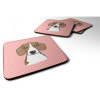 Checkerboard Pink Beagle Foam Coaster Set Of 4