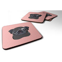 Checkerboard Pink Black Pug Foam Coaster Set Of 4