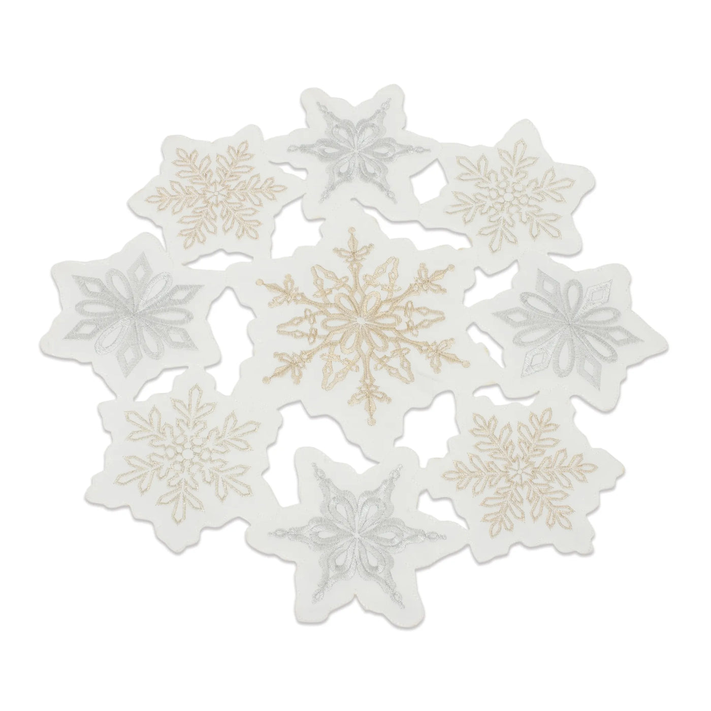 Add A Festive Touch To Your Holiday Table With This Exquisite Embroidered Snowflake Doily! Our Wintry White Tones And Chic Gold And Silver Embroidered Snowflake Accents Will Give Your Home A Classic, Festive Atmosphere. Made From Quality Polyester Fabric, This Table Doily Is Durable And Easy To Care For. Create Special Memories With Loved Ones This Season With The Perfect Dining Table Accent!