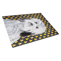 Havanese Candy Corn Halloween Glass Cutting Board Large