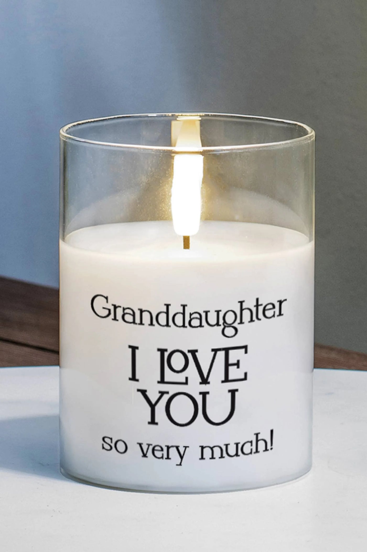 Flameless Clear Led Glass Candle That Says: Granddaughter/I Love You So Very Much! 4In Tall Led Candle Has A Flickering Flame Appearance; 3In Diameter.