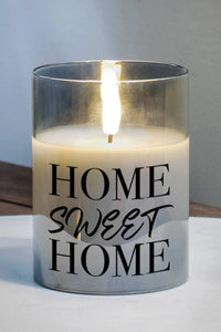 Flameless Pearlized Grey Led Glass Candle That Says: Home Sweet Home.