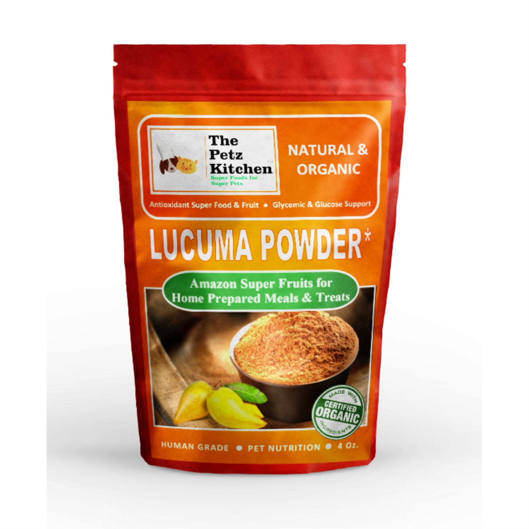 1683-Thepetzlucu4Oz Lucuma Powder - Glycemic Glucose & Digestive Support* Antioxidant Usda Organic Super Food & Fruit The Petz Kitchen Manufactured By Organic Pet Systems, Made In United States
