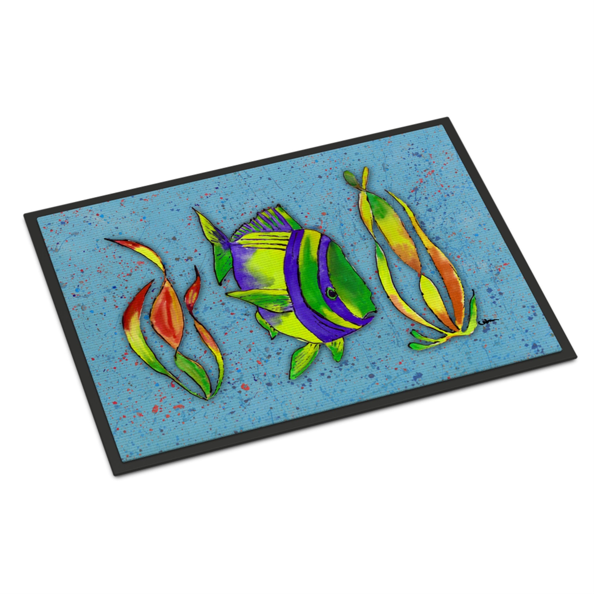 213-615872786237 Tropical Fish On Blue Indoor Or Outdoor Mat 18X27 By Carolines Treasures, Inc, Made In Usa.Welcome Your Family And Friends With This Artwork Mat In Full Color. This Action Backed Mat With Hold Up In Almost Any Weather Condition. This Door Mat Measures About 18 Inches By 27 Inches And Has A Black Binding Tape To Hold It'S Many Layers Together. The Top Layer Is A Polyester Felt That Is Dyed With The Image That You See On The Mat. The Next Couple Of Layers Give The Mat Stability And The Bottom Of The Mat Is Rubber That Has Been Stamped To Help Prevent Slipping. To Clean This Mat, Hose It Off With A Water Hose Or Use A Powerwasher. Do Not Use Any Cleaner That Produces Suds.