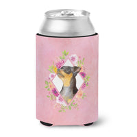 Black Miniature Pinscher Pink Flowers Can Or Bottle Hugger