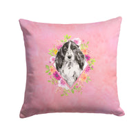 Black Parti Cocker Spaniel Pink Flowers Fabric Decorative Pillow