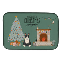 Black White Bull Terrier Christmas Everyone Dish Drying Mat
