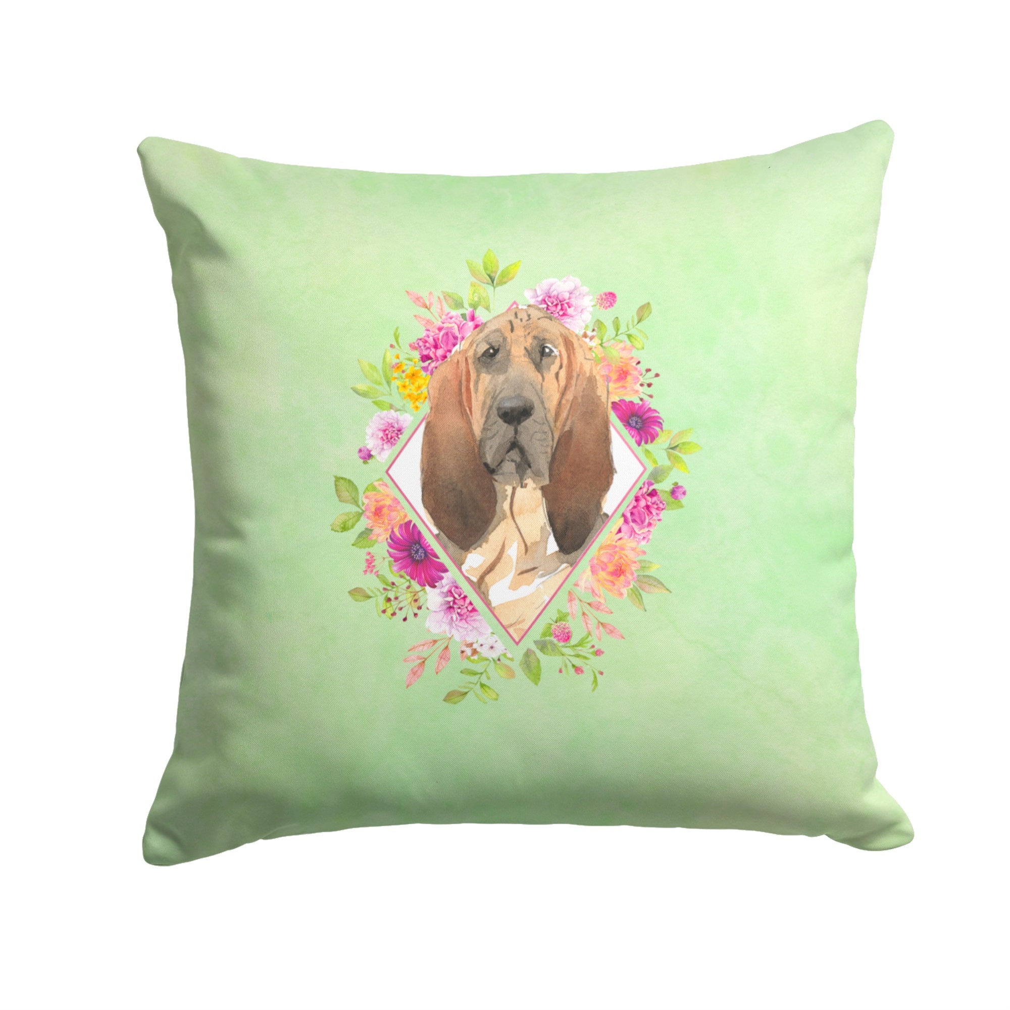 Bloodhound Green Flowers Fabric Decorative Pillow
