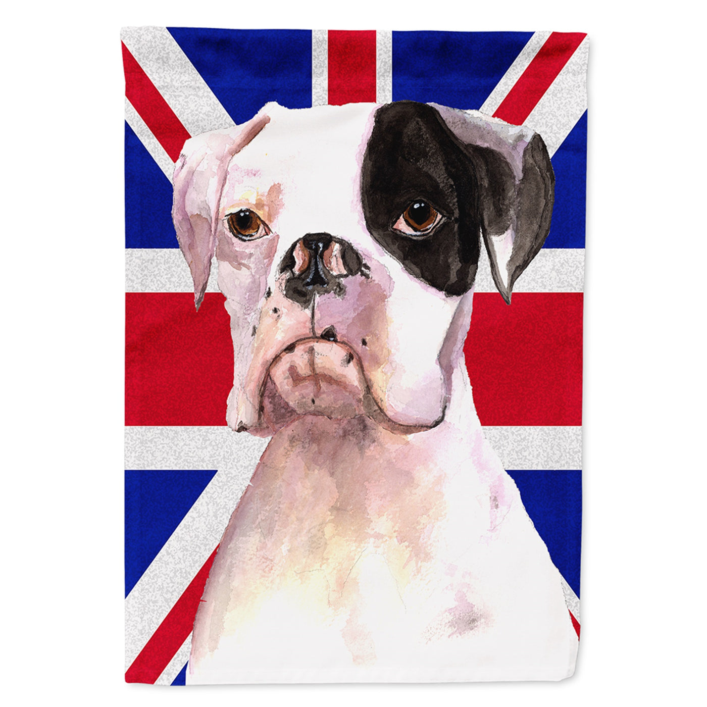213-615872829040 Boxer Cooper With English Union Jack British Flag Flag Garden Size By Carolines Treasures, Inc, Made In Usa.Artwork For Your Garden, Patio Or Yard. This Is A Thick Double Sided Garden Flag Made From Two Pieces Of Polyester Fabric. This 2 Ply Garden Size Flag Is Water Resistant And Weather Proof. Heavier Than Most Other Garden Flags Available This Flag Will Hold Up In Wind, Rain And Snow. Make Your Personal Statement In Your Outdoor Decor With This Colorful Quality Garden Flag. This Decorative Garden Size Flag Has A Sleeve Sewn Into The Top Of The Flag To Allow You To Showcase Your New Flag On A Standard Size Garden Stand. The Garden Stand Is Sold Seperately.