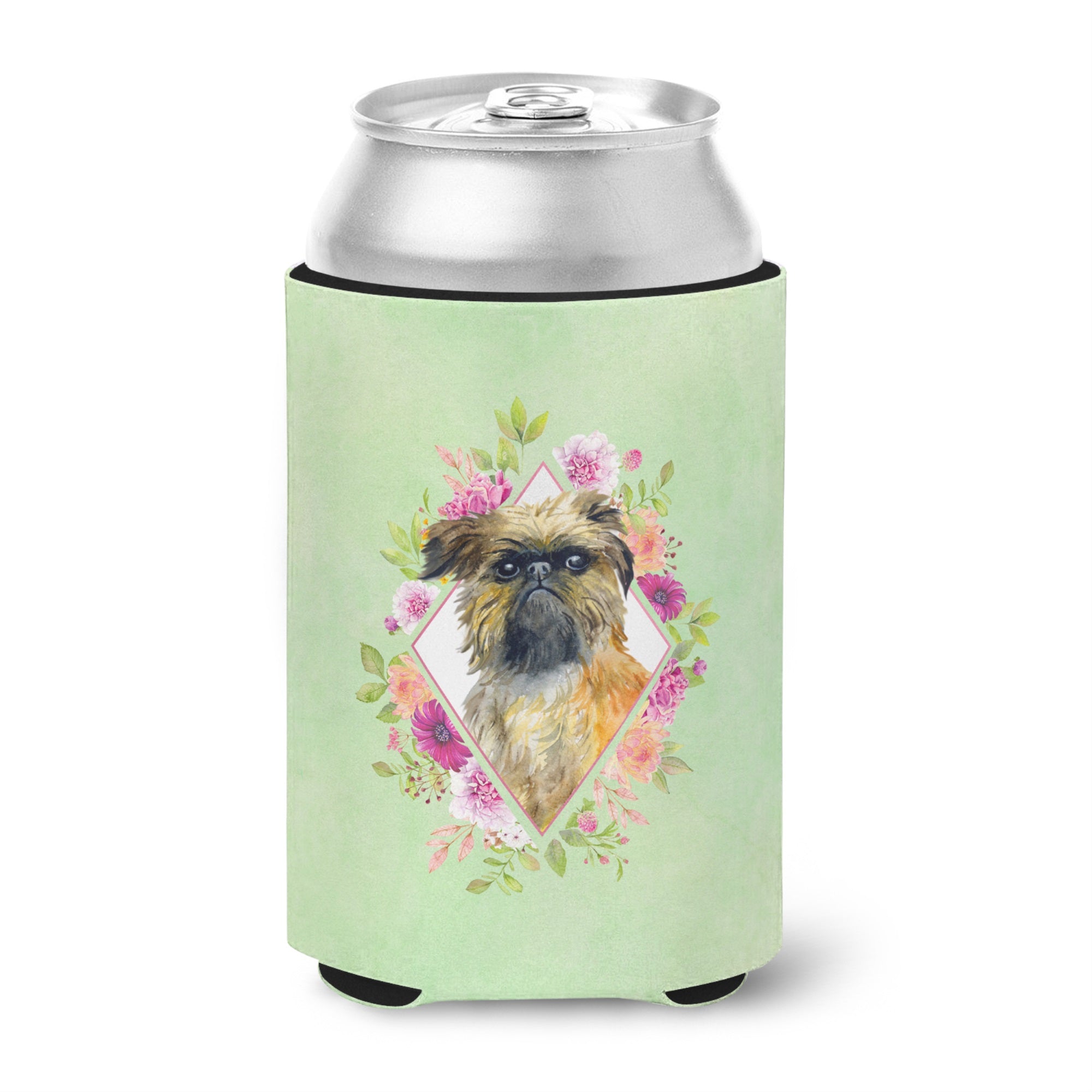 Brussels Griffon Green Flowers Can Or Bottle Hugger