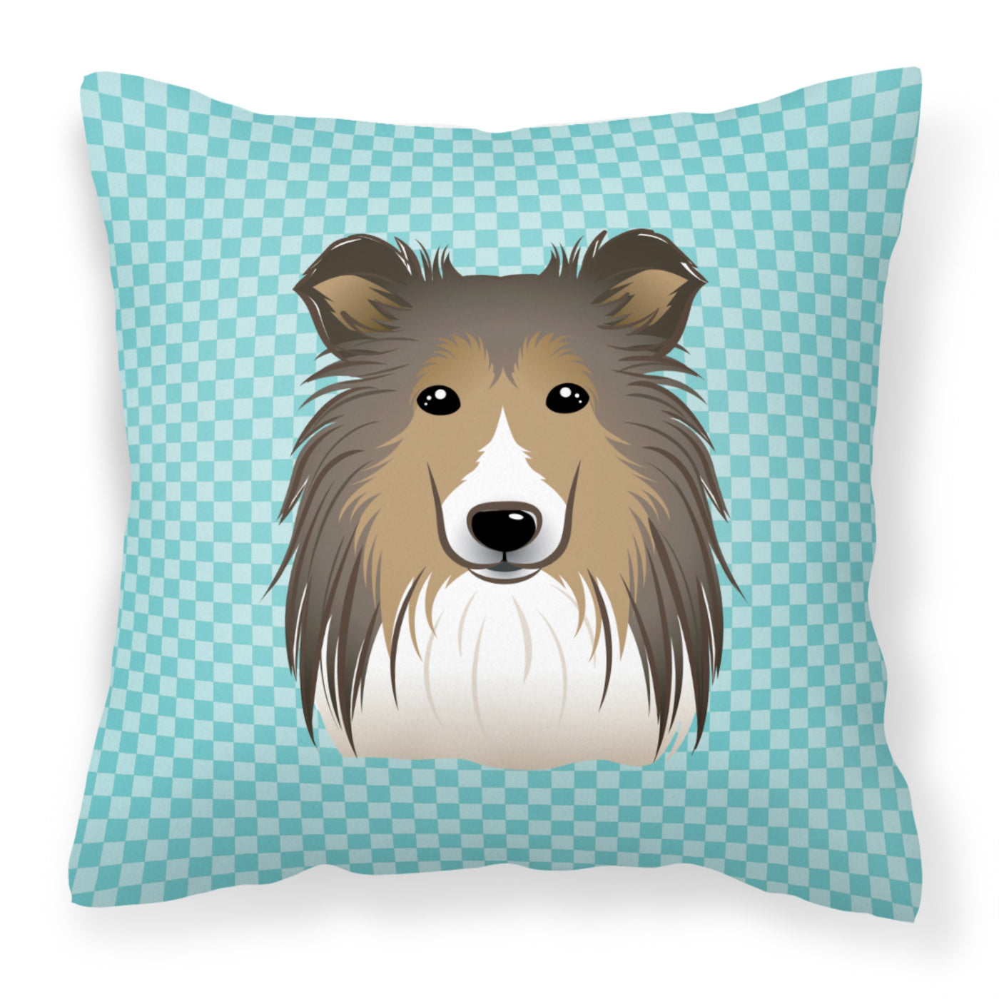 Checkerboard Blue Sheltie Fabric Decorative Pillow