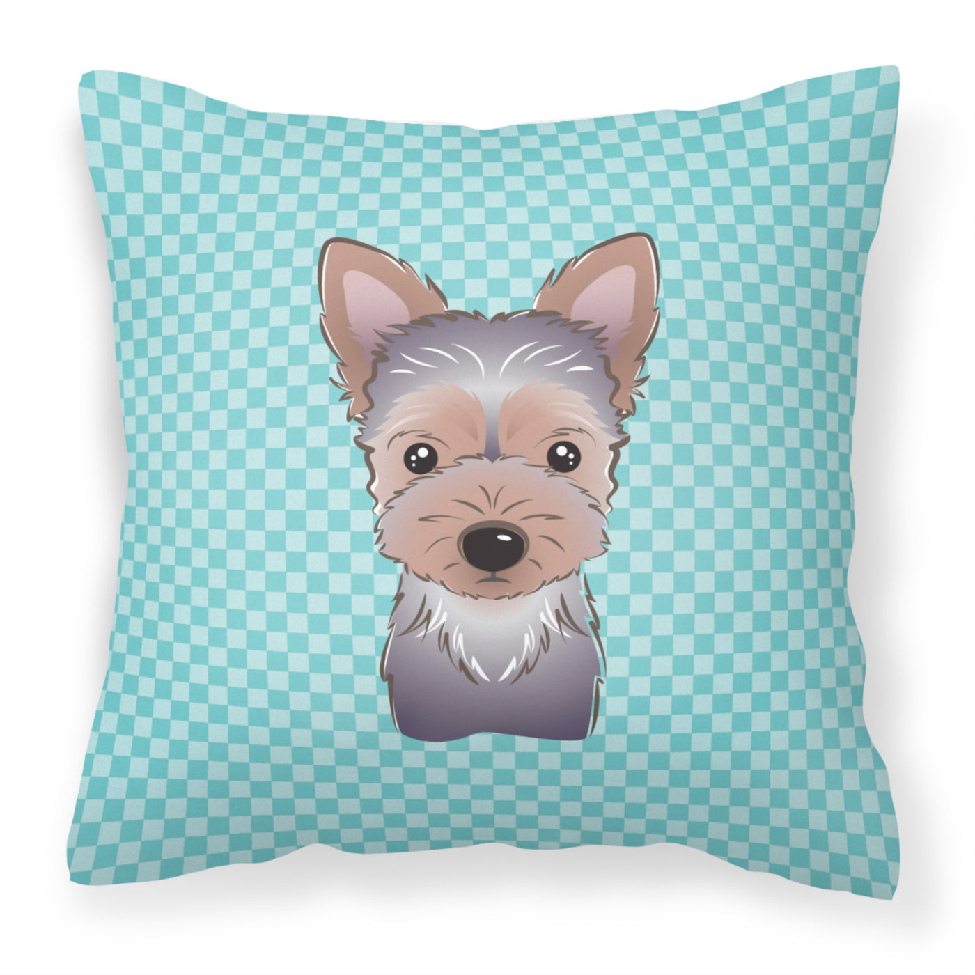 213-615872896356 Checkerboard Blue Yorkie Puppy Fabric Decorative Pillow By Carolines Treasures, Inc, Made In Usa.Add Color To Your Solid Color Outdoor Patio Furniture Or Outdoor Seating Area With Our Full Color Artwork Outdoor Pillows. Approximately 14 Inches By 14 Inches Measured From Corner Of Pillow. 100% Polyester Fabric Pillow Sham With Pillow Form. This Pillow Is Made From Caroline'S Treasures New Material That Is Woven To Be Water Resistant. This Soft Canvas Fabric Can Be Used Inside On The Couch Or Outside On The Patio, Porch Or Veranda. We Dye The Fabric With Dyes That Are Color Fast And Built To Handle Weather. The Fabric Is Also Mildew Resistant, Stain Resistant, Fade Resistant And Machine Washable. Three Pieces Of Fabric Are Sewn Together To Create A Sham And Then A Polyester Insert Is Placed Inside The Sham To Form The Pillow. The Pillow Is Overstuffed And Holds It'S Shape. Both The Sham And The Pillow Insert Are Made In The United States. The Pillows Are All Handmade And May Vary Slightly In Size.
