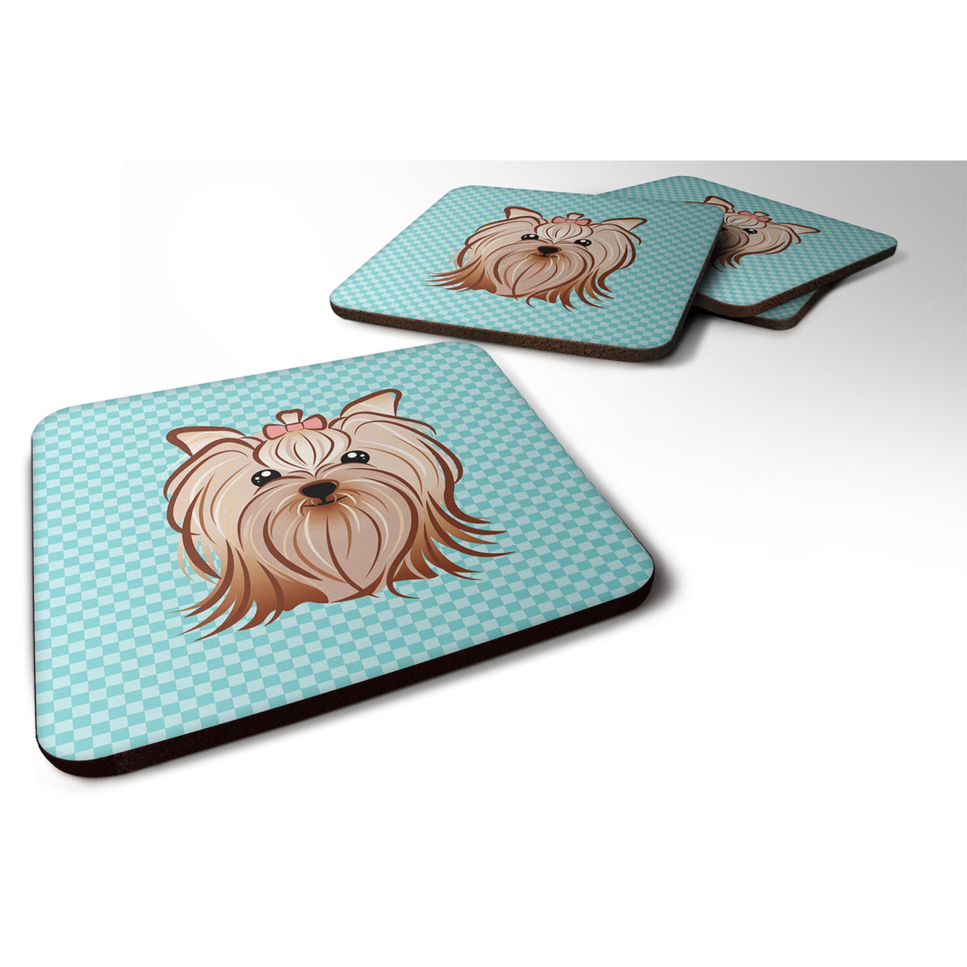 213-615872894215 Checkerboard Blue Yorkie Yorkishire Terrier Foam Coaster Set Of 4 By Carolines Treasures, Inc, Made In Usa.Square Artwork Foam Coaster Set Of Four Coasters. Each Measuring 3 1/2 Inches By 3 1/2 Inches. Permanently Dyed With Full Color Artwork And Fade Resistant. Great To Keep Water From Your Beverage Off Your Table And Add A Bit Of Flair To A Gathering. Match With One Of The Insulated Coolers Or Huggers For A Nice Gift Pack. Wash The Coaster In The Top Of Your Dishwasher, Take Out And Lay Flat To Dry. Design Will Not Come Off. Made From The Same Material That We Use For Our Mouse Pads. Material Is Heat Resistant. Perfect For Cold Or Hot Drinks. Coffee Or Tea.