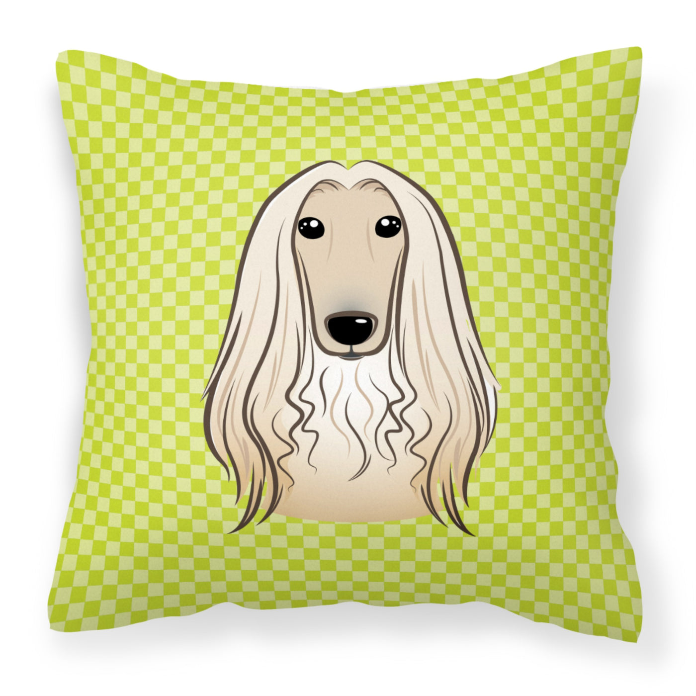 Checkerboard Lime Green Afghan Hound Fabric Decorative Pillow