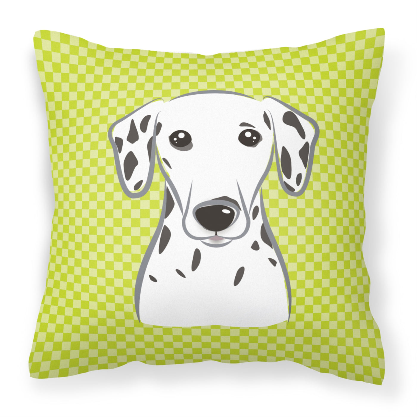 213-615872897377 Checkerboard Lime Green Dalmatian Fabric Decorative Pillow By Carolines Treasures, Inc, Made In Usa.Add Color To Your Solid Color Outdoor Patio Furniture Or Outdoor Seating Area With Our Full Color Artwork Outdoor Pillows. Approximately 14 Inches By 14 Inches Measured From Corner Of Pillow. 100% Polyester Fabric Pillow Sham With Pillow Form. This Pillow Is Made From Caroline'S Treasures New Material That Is Woven To Be Water Resistant. This Soft Canvas Fabric Can Be Used Inside On The Couch Or Outside On The Patio, Porch Or Veranda. We Dye The Fabric With Dyes That Are Color Fast And Built To Handle Weather. The Fabric Is Also Mildew Resistant, Stain Resistant, Fade Resistant And Machine Washable. Three Pieces Of Fabric Are Sewn Together To Create A Sham And Then A Polyester Insert Is Placed Inside The Sham To Form The Pillow. The Pillow Is Overstuffed And Holds It'S Shape. Both The Sham And The Pillow Insert Are Made In The United States. The Pillows Are All Handmade And May Vary Slightly In Size.