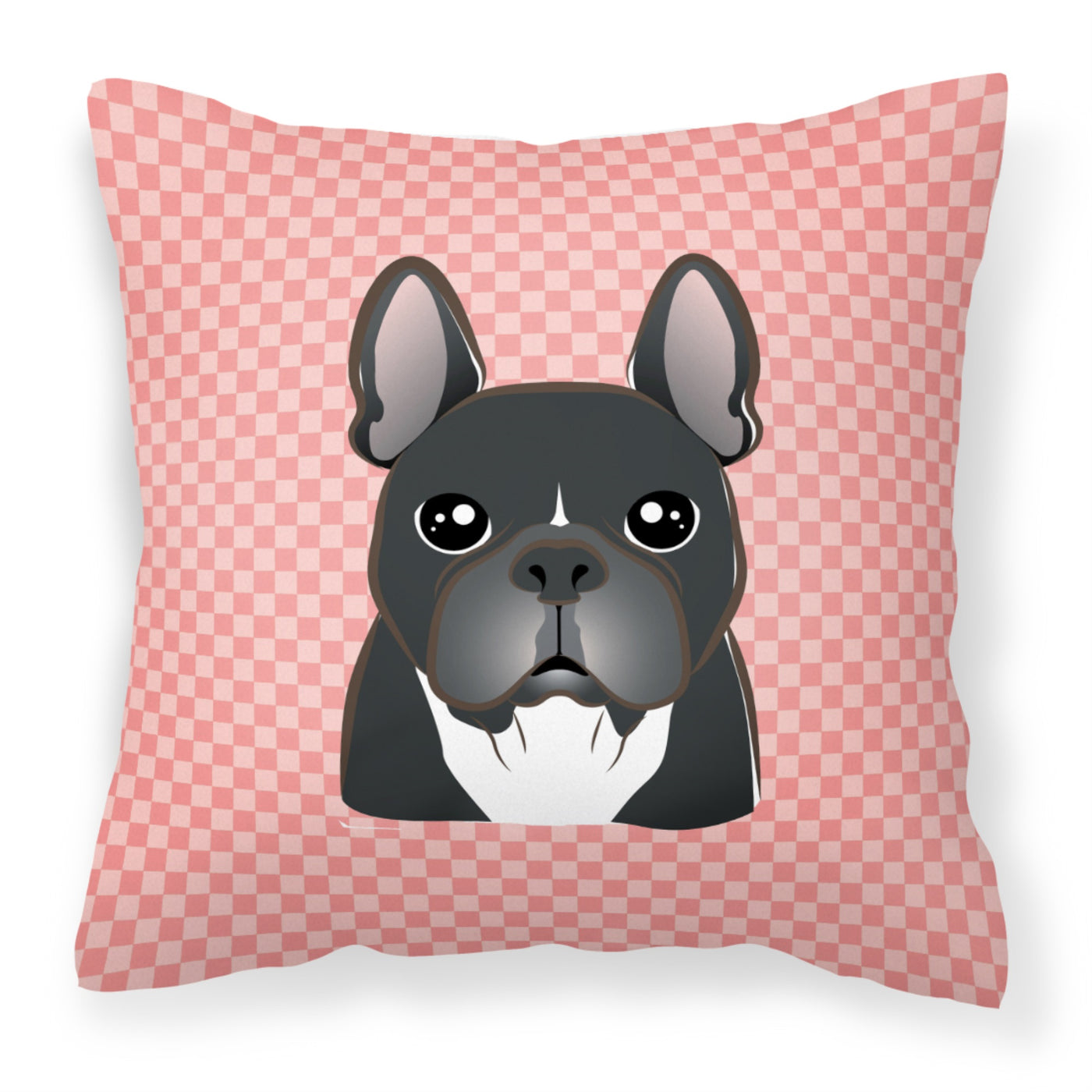 213-615872896929 Checkerboard Pink French Bulldog Fabric Decorative Pillow By Carolines Treasures, Inc, Made In Usa.Add Color To Your Solid Color Outdoor Patio Furniture Or Outdoor Seating Area With Our Full Color Artwork Outdoor Pillows. Approximately 14 Inches By 14 Inches Measured From Corner Of Pillow. 100% Polyester Fabric Pillow Sham With Pillow Form. This Pillow Is Made From Caroline'S Treasures New Material That Is Woven To Be Water Resistant. This Soft Canvas Fabric Can Be Used Inside On The Couch Or Outside On The Patio, Porch Or Veranda. We Dye The Fabric With Dyes That Are Color Fast And Built To Handle Weather. The Fabric Is Also Mildew Resistant, Stain Resistant, Fade Resistant And Machine Washable. Three Pieces Of Fabric Are Sewn Together To Create A Sham And Then A Polyester Insert Is Placed Inside The Sham To Form The Pillow. The Pillow Is Overstuffed And Holds It'S Shape. Both The Sham And The Pillow Insert Are Made In The United States. The Pillows Are All Handmade And May Vary Slightly In Size.