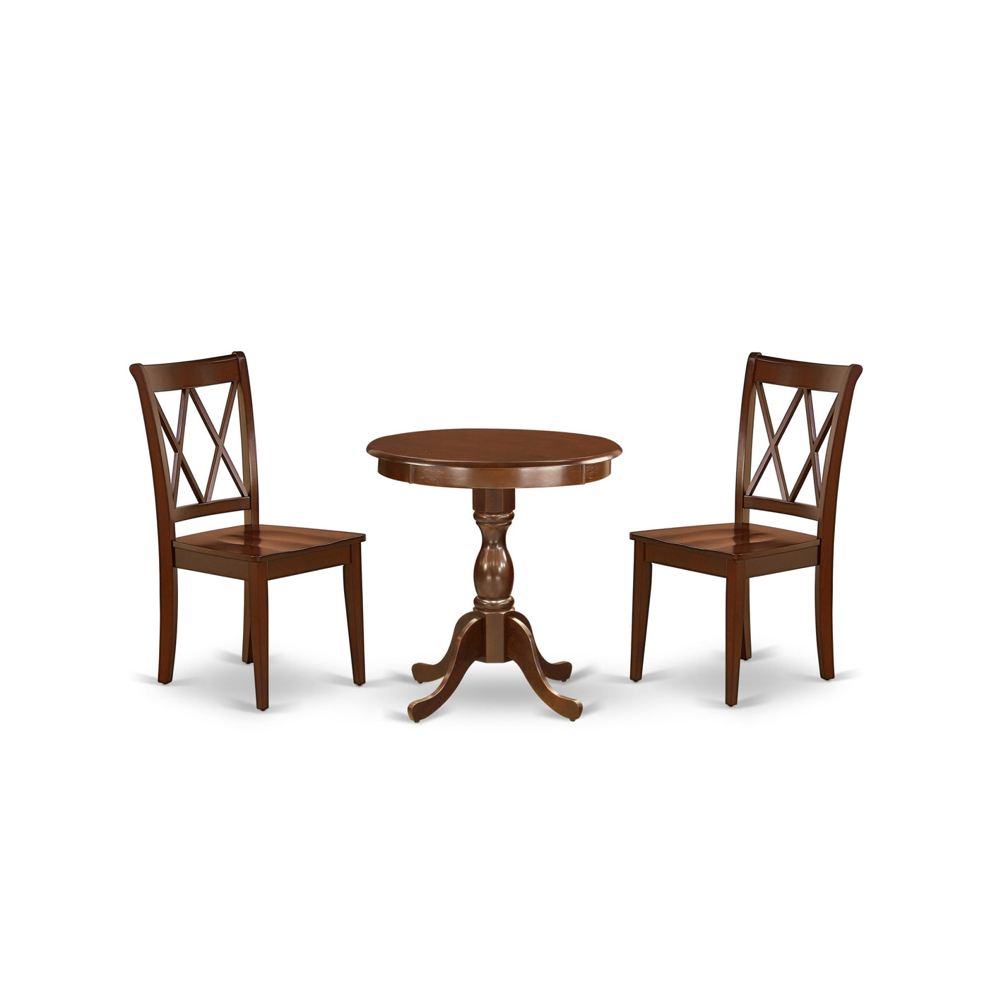 East West Furniture - Escl3-Mah-C - 3-Pc Dining Room Table Set - 2 Mid Century Cushion Seat Chairs - 1 Dining Room Table (Mahogany Finish)