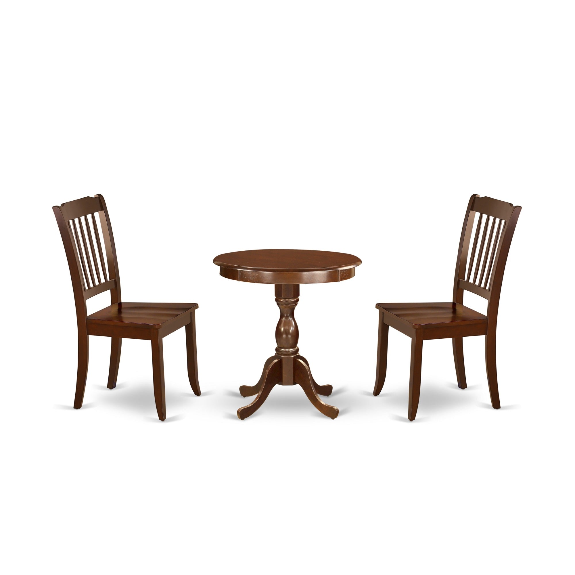 East West Furniture - Esda3-Mah-W - 3-Pc Modern Dining Table Set - 2 Kitchen Chairs And 1 Dining Room Table (Mahogany Finish)