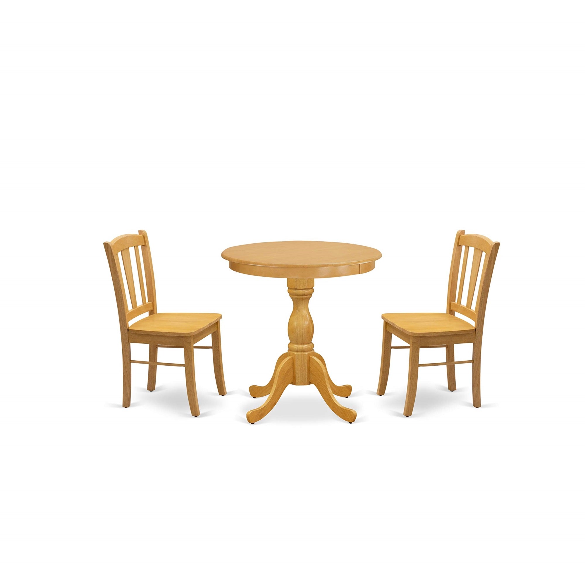 East West Furniture - Esdl3-Oak-W - 3-Pc Kitchen Table Setthis Dinette Set Includes 2 Wooden Chairs And 1 Modern Round Dining Table
